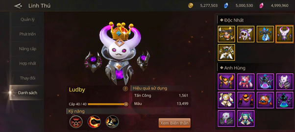 Mỗi Linh thú sở hữu ngoại hình, bộ kỹ năng, và thuộc tính riêng biệt, phù hợp với nhiều phong cách chơi và