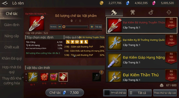 Nguyên liệu chế tác vật phẩm bộ Giáp Hạng Nặng